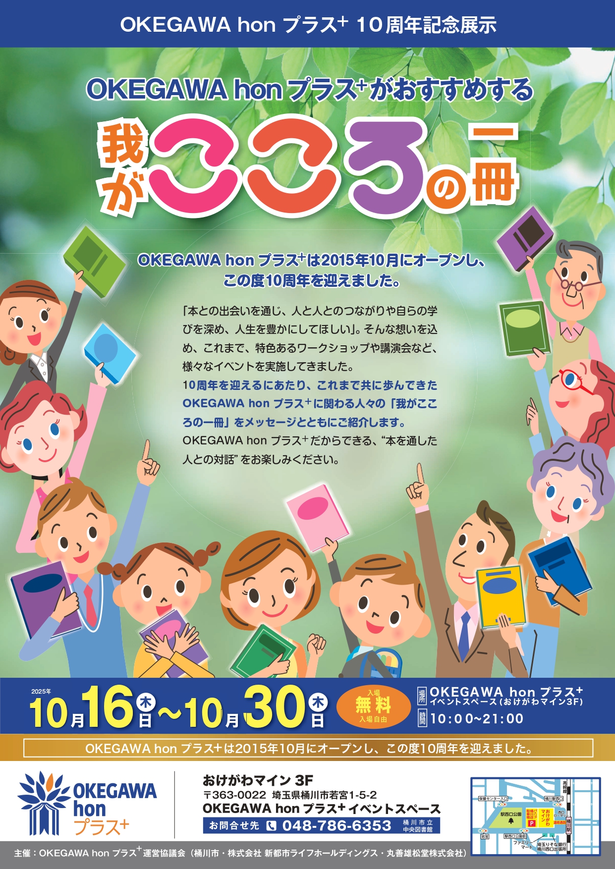 詳細内容 | OKEGAWAhonプラス+は2015年10月にオープンし、この度10周年を迎えました。 10周年を迎えるにあたり、これまで共に歩んできたOKEGAWA hon プラス+ に関わる人々の「我がこころの一冊」をメッセージとともにご紹介します。 OKEGAWA hon プラス+ だからできる、“本を通した人との対話”をお楽しみください。 |