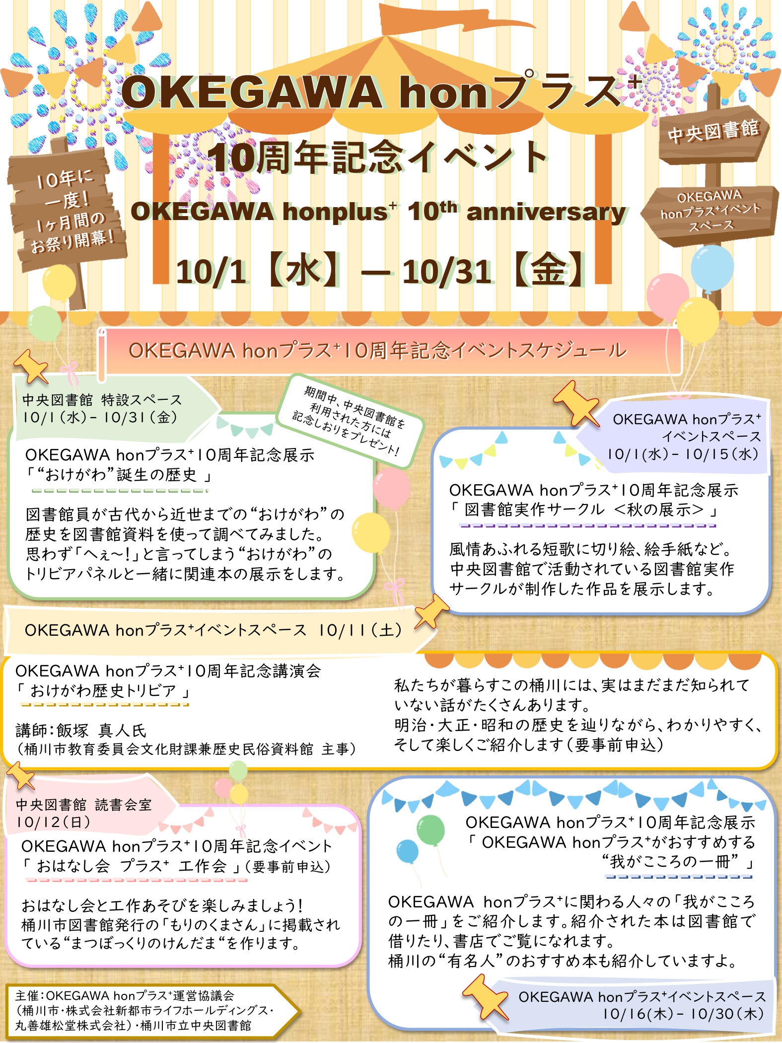 【中央図書館+honプラス⁺】OKEGAWA honプラス⁺10周年記念イベントについて